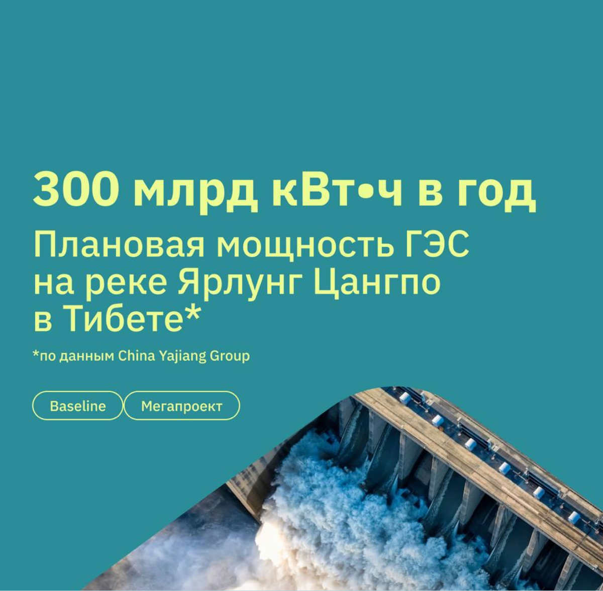 300 млрд кВт·ч в год, инвестиции $167 млрд и запуск к 2033 году — в Тибете стартовало строительство каскада ГЭС на реке Ярлунг Цангпо. Проект уже называют самым амбициозным в истории китайской гидроэнергетики. В июле 2025 года в городе Ньингчи был заложен первый камень будущего гидроэнергетического комплекса в нижнем течении реки Ярлунг Цангпо. Старт строительству дал премьер Госсовета КНР Ли Цян. Официальное одобрение проект получил в конце 2024 года, а ввод в эксплуатацию запланирован на 2033 год. Комплекс разместится в округе Медог префектуры Ньингтри, недалеко от границы с Индией. Здесь построят пять каскадных гидроэлектростанций проточного типа. Такая схема предполагает отвод воды по тоннелям на более низкий уровень для выработки электроэнергии с последующим возвратом в русло — без создания крупных водохранилищ. Заявленная установленная мощность проекта оценивается в диапазоне 60–70 млн кВт, а годовая выработка — около 300 млрд кВт·ч. Для сравнения, это почти втрое больше, чем у Г
