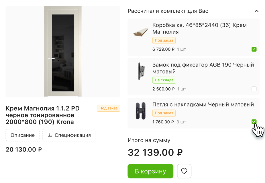 позиций и может чётко указать, какие именно комплектные товары подходят к