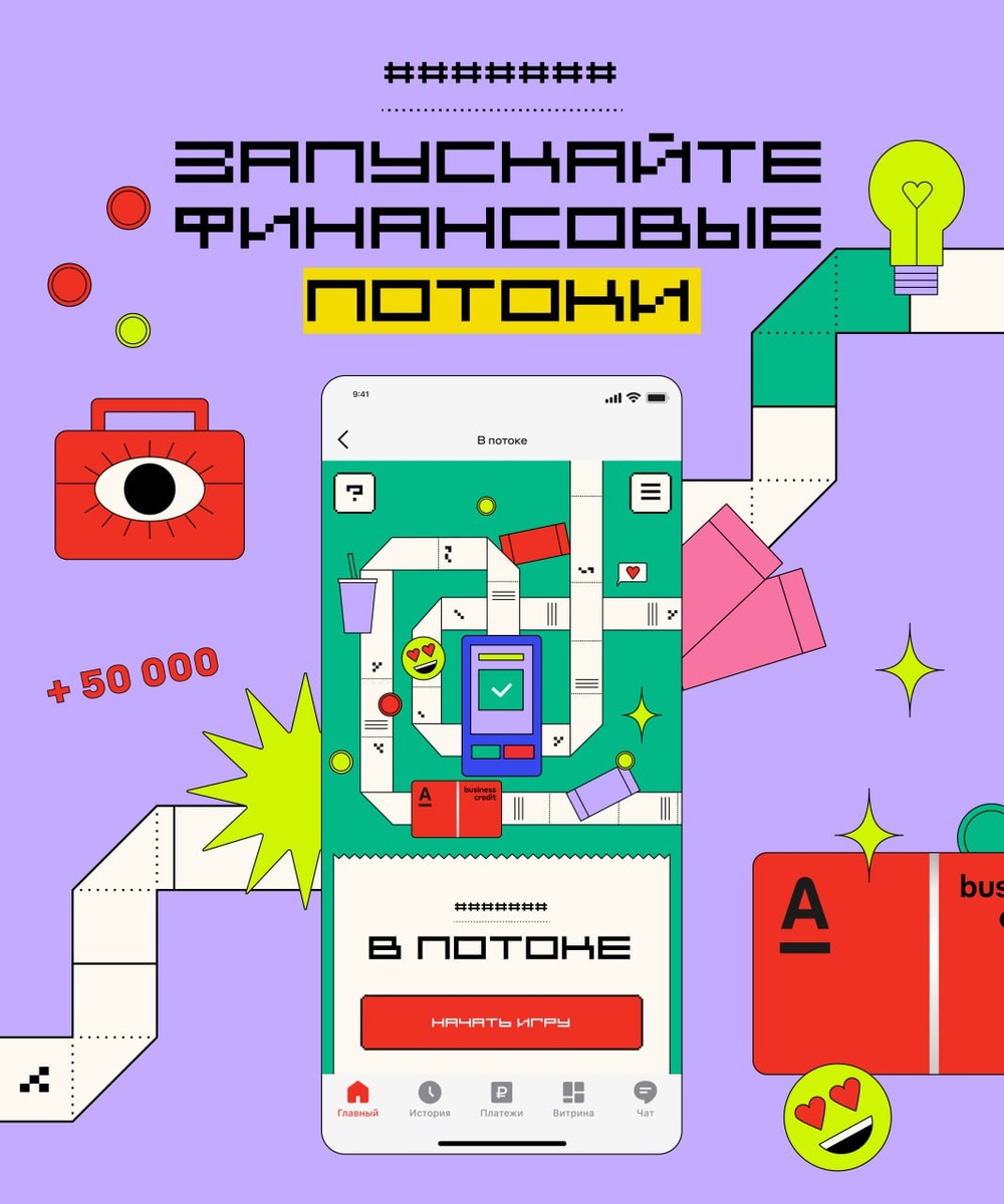 Этот тренд нам очень нравится и мы не хотим, чтобы он заканчивался, если вы понимаете о чем мы 😏 Недавно выпустили игру внутри банковского приложения Альфа-Бизнес Мобайл — "В Потоке". За основу была взята игровая механика "трубопровод" (или "Pipe Mania"), часто используемая в головоломках. Игроку необходимо соединять элементы трубопровода, чтобы собрать непрерывный путь для перемещения воды. Мы поштурмили над метафорой изменений, адаптации бизнесменов под меняющиеся внешние условия, пути трансформации на этом пути (таким был запрос от клиента) и представили потоки в виде....🥁 чековых лент. Игрок должен грамотно управлять денежными потоками, соединяя кассовые терминалы бесконечной чековой лентой. В игре 35 уровней сложности, с мягкой прогрессией от простых к более сложным 🦾 Разработали игру совместно с друзьями из студии ZBRSK.RU, а авторский шрифт, имитирующий чековый, любезно предоставил дизайнер Александр Капуста. Кстати, знаете ли вы, что самая первая игра с такой механикой —