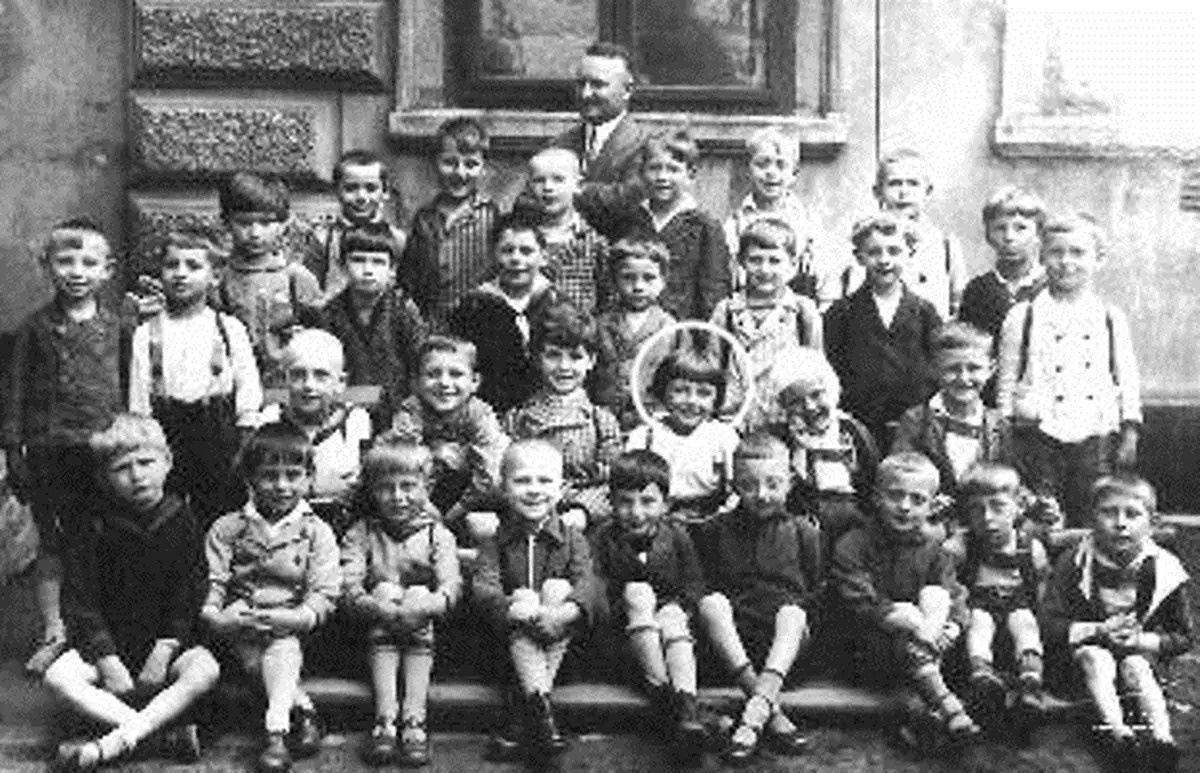 Все четверо Сыроваток были немцами до мозга костей. Эрна Сыроватка, например, всю свою жизнь проработала в школе, которую закончили оба ее сына - проработала учительницей немецкого языка, географии и истории. Вот фото старшего со своим классом.