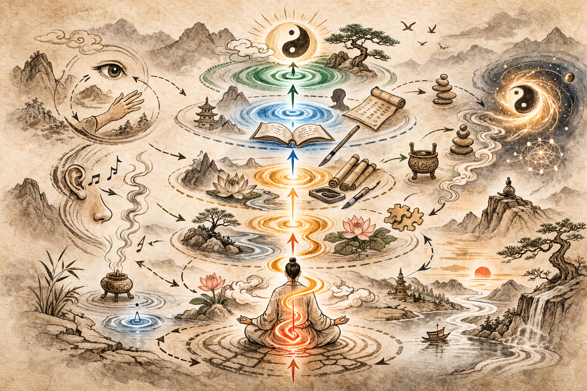Первая часть цикла работы восприятия характерна для западного мышления. То есть, выражаясь в рамках восточной терминологии, первый уровень является янским, то есть активным, а второй иньским. Это абсолютно логично с точки зрения логики так называемых Последующих Небес. Это есть логика обыденной жизни, которая строится на фундаменте внешнего материального восприятия. И когда мы говорим о логике здравого смысла, мы обычно имеем в виду именно такой подход, в котором гипертрофированно развито внешнее восприятие.