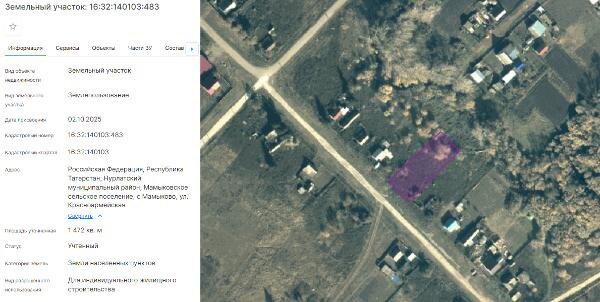 Название: Земельный участок из земель населенных пунктов с кадастровым номером 16:32:140103:483 площадью 1472 кв.м., расположенного по