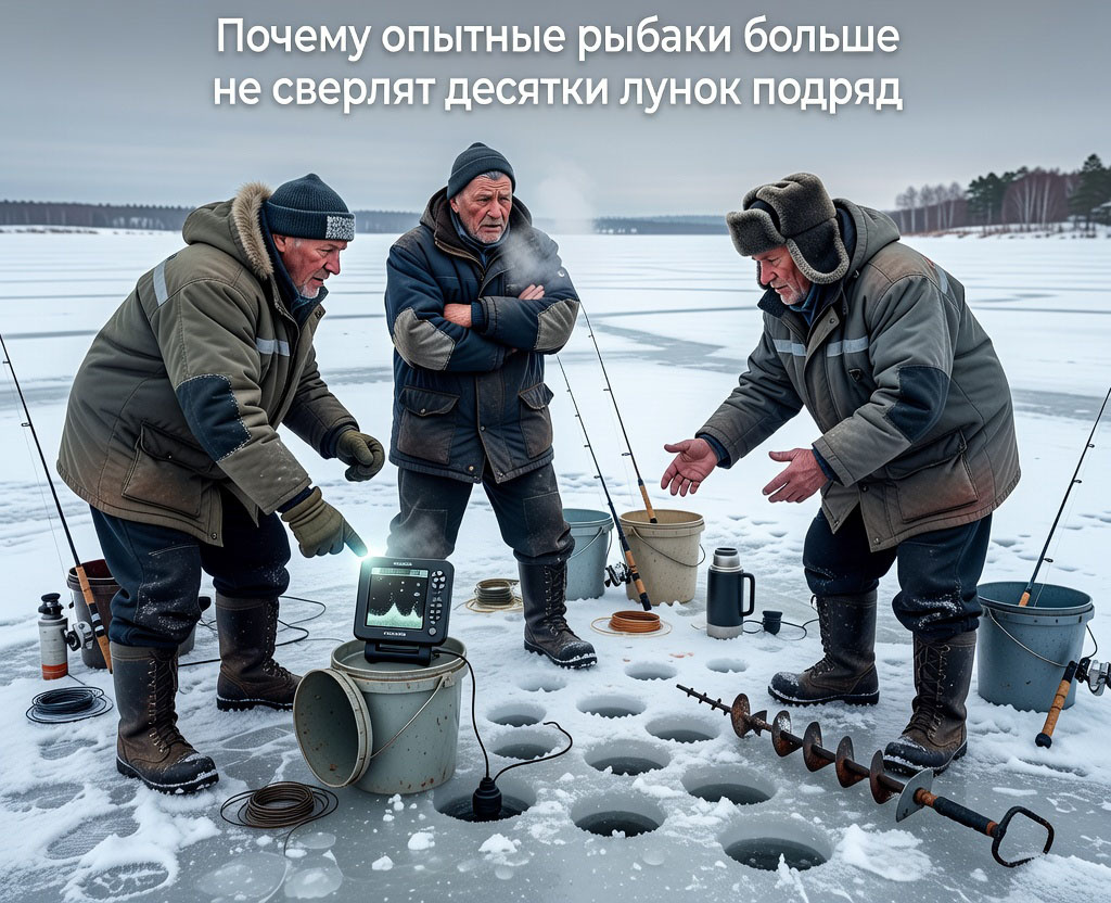 Многие привыкли считать, что успех зимней рыбалки напрямую зависит от количества лунок. Чем больше просверлил — тем выше шанс найти рыбу. Но в последние годы опытные рыбаки всё чаще используют другую тактику, которая позволяет ловить больше, сверля меньше. Главная ошибка — хаотичный поиск. Человек сверлит 20–30 лунок подряд, быстро проверяет каждую и уходит дальше. В итоге рыба может быть рядом, но она просто не успевает отреагировать на приманку. Рыбе нужно время. Особенно зимой, когда обмен веществ замедлен. Окунь или судак может подойти к приманке через 30–60 секунд после начала игры. Если уйти раньше — поклёвки не будет, даже если рыба находилась в нескольких метрах. Вторая распространённая ошибка — слишком активная игра. Многие делают резкие взмахи, надеясь привлечь внимание. На практике зимой лучше работает спокойная подача с паузами. Именно на паузе происходит большинство поклёвок. Ещё один важный момент — проверка разных горизонтов. Часто рыба стоит не у дна, а выше. Особенно