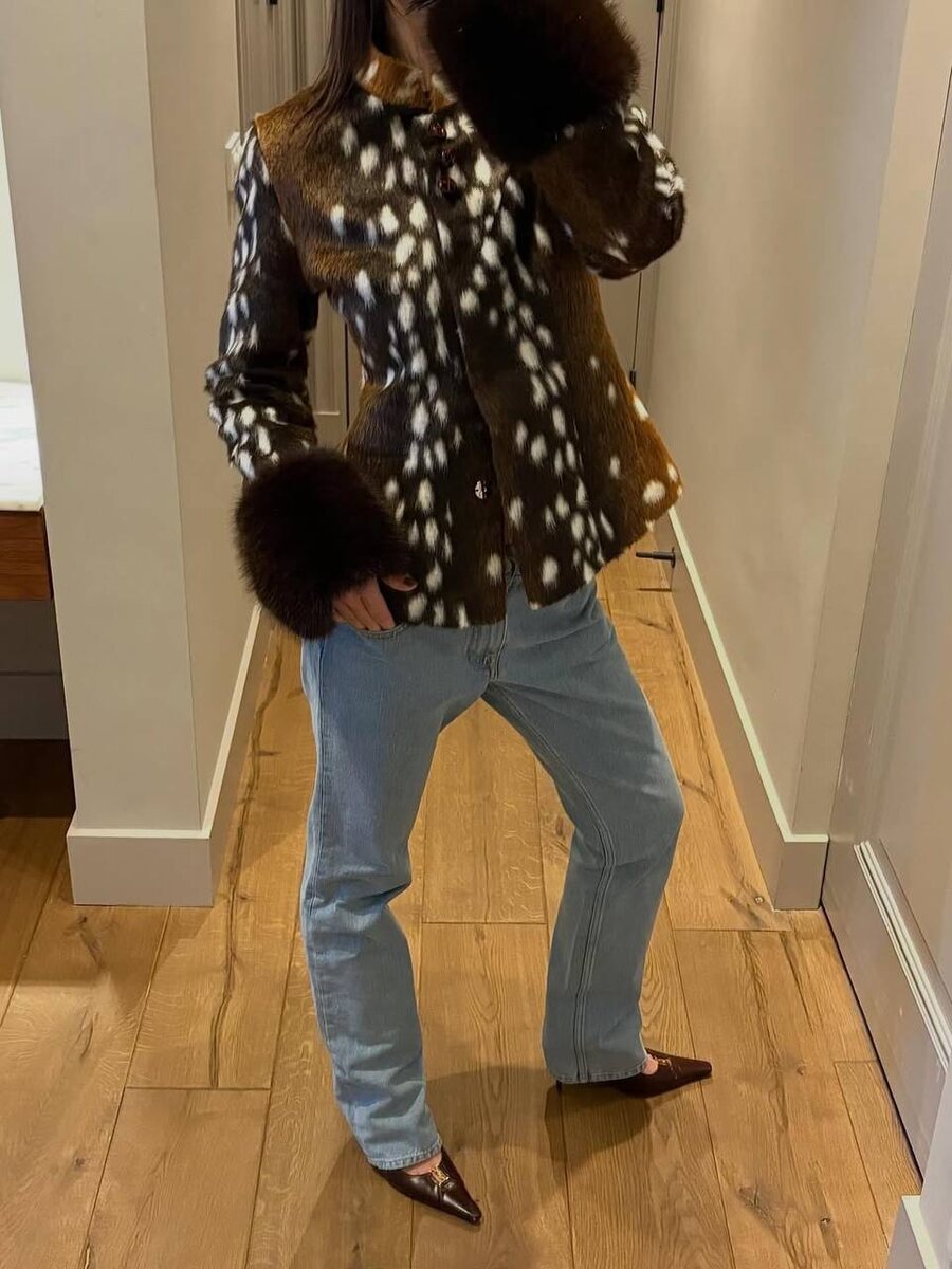 В ленте все время на попадается жакет с оленьим принтом. Оказалось, этот «бэмби-жакет» от бренда Carelli. За ним, кстати, просто так не угонишься — вещь лимитированная, доступна только по предзаказу. Стоит около 400 евро.