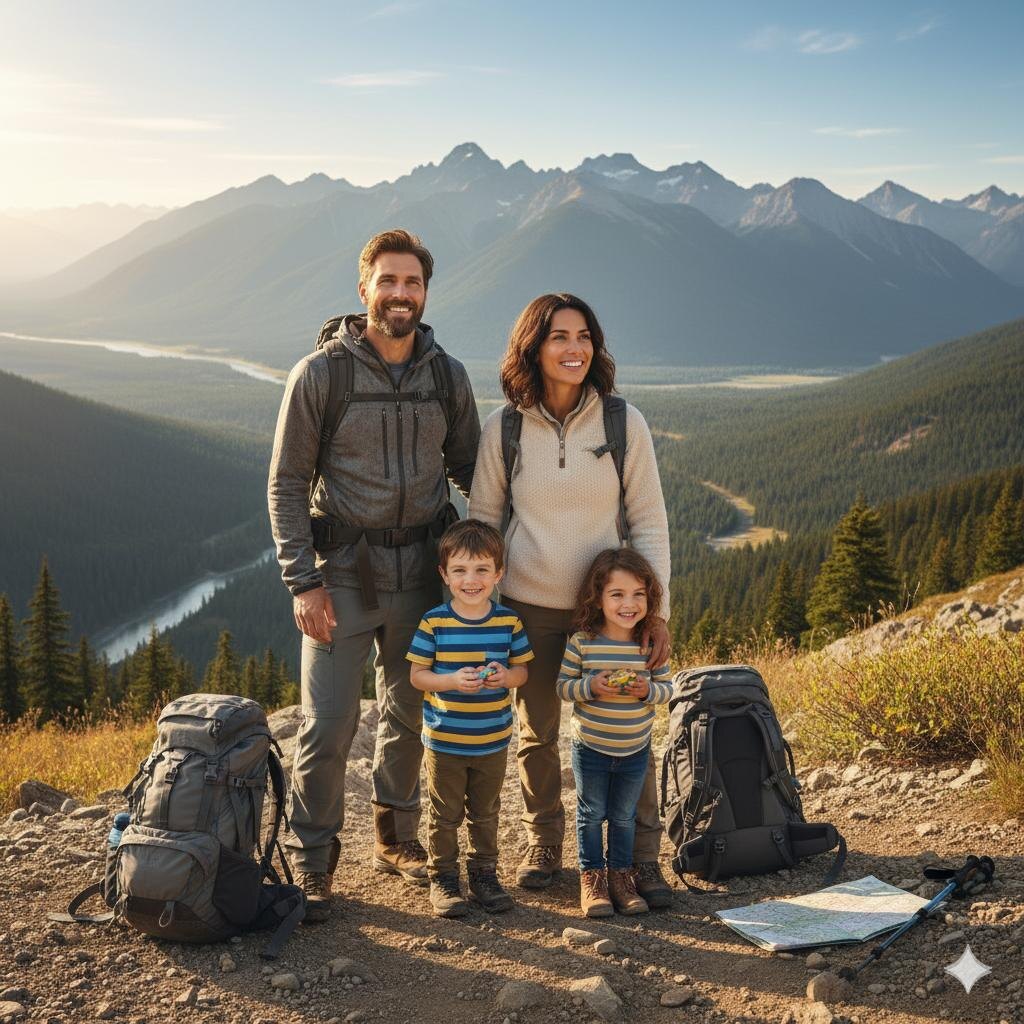 Сгенерировать фото🪄 Сохраните точные лица, черты лица, волосы, внешний вид тела с референсных изображений. Изменяйте только горное окружение. Семья делает перерыв во время похода на живописной горной тропе, любуется видом. Панорамный пейзаж на заднем плане, счастливые уставшие лица, походное снаряжение. Естественное освещение, чистый горный воздух, ощущение приключения. Широкоугольный объектив, 16:9, высокая детализация природы. Согласованность персонажей, сохранение идентичности с входных фото.