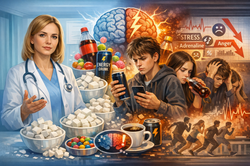 Во Владивостоке подростка доставили в больницу из-за эрозийного гастрита, который спровоцировала газировка. 12-летнего мальчика доставили с кровавой рвотой, пишет РИА Новости. Редакция «КИ» поговорила с психиатром и узнала, почему у дети так привязываются к сладким газированным напиткам. Сладкая газировка, энергетики и «яркие» сладости часто обсуждают как продукты, которые «портят нервы», вызывают тревожность и даже «зависимость». В заголовках это звучит как установленный факт, но в медицине важно различать: что действительно доказано, что вероятно, а что пока остается гипотезой, — отметила Анастасия Маркевич в разговоре с «КИ». Психиатр рассказала о том, что бутылка колы содержит около десяти чайных ложек сахара. После такого объема глюкоза резко растет, затем организм выбрасывает инсулин, и через час-два уровень сахара падает. Этот спад тело воспринимает как стресс: повышаются кортизол и адреналин. Появляются раздражительность, тревога, внутренняя дрожь — и снова возникает тяга к сла