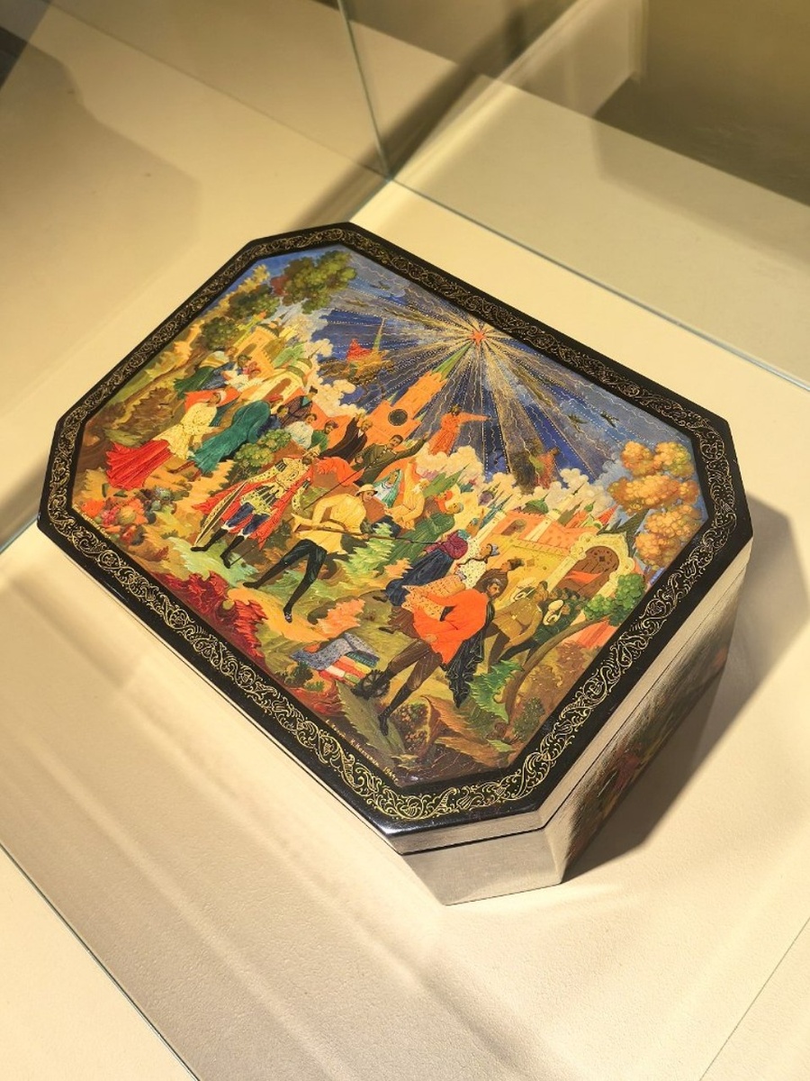 До революции Палех был известен как крупный центр иконописи и декоративной росписи храмов и храмовых предметов. Это закрепило у мастеров характерную манеру и технику письма по дереву и по ткани, что позднее перенеслось и на лаковую миниатюру. Поворот произошёл после 1917 года, когда иконописный рынок рухнул и мастера нашли новое применение своему таланту. В 1920 году началось переосмысление традиционных канонов с новым материалом и формой — папье-маше и лаками, что привело к рождению палехской лаковой миниатюры, которую мы все знаем. Это зафиксировано в источниках, где указывается начало артели «Древней живописи» и последующий переход к лаковой росписи. Техника сохранила основу иконописной подготовки, но сюжеты стали новыми, под стать новому времени и эпохе. Появились образцы революционных деятелей, красноармейцев, индустриальные и космические мотивы, сцены сельской жизни и бытовые эпизоды. Таким образом, палехская роспись адаптировалась к советской идеологии и новым тематикам, сохра