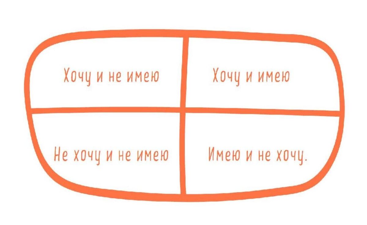 … 💫 Так почему бы не вспомнить про техники написания желаний? Тем более, сейчас это актуальная тема. Один из вариантов, как заполнить список желаний и заодно расширить свою финансовую емкость здесь. 📖 Но вот читаю книгу Татьяны Мужицкой: Теория невероятности - и хочу с вами поделиться ее техникой. Она мне очень напоминает декартовы координаты, знакомые мне по коучингу. Но адаптированную под определение своих желаний. Рисуем 4 квадратика, как показано на рисунке. И заполняем их строго по порядку. 1️⃣Хочу и имею Сюда попадает всё, что у тебя уже есть и что тебе правда хочется / хотелось. Может быть это любимая работа, квартира или машина, здоровое тело и прочее. 2️⃣Не хочу, но имею Здесь то, что у тебя есть, но тебе это не нравится. Например: лишний вес, дефицит времени на любимые дела, токсичные отношения. 3️⃣Не хочу и не имею Это то, чего ты не хочешь и у тебя этого нет. Вроде бы и зачем про это думать, но это квадрат принятых решений. Может быть вы решили не ходить в аспира