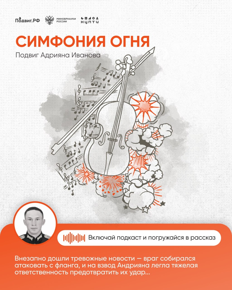 Под плотным артиллерийским обстрелом гаубичный самоходный взвод старшего лейтенанта Адрияна Иванова выполнял боевую задачу. Внезапно с командного пункта пришли тревожные новости: крупная вражеская группировка готовилась ударить во фланг нашим подразделениям. Если прорвутся, станет еще труднее. Иванов быстро принял решение действовать. Он запросил координаты, организовал наведение и открыл огонь из всех орудий, несмотря на продолжающийся обстрел. Точным ударом взвод уничтожил живую силу противника и пять единиц техники. Попытка прорыва была сорвана, враг отступил на исходные позиции, и рубеж обороны остался за нашими войсками. Читай художественный рассказ о подвиге Андрияна Иванова 🧡Подвиг.РФ | Поддержать канал голосом #подвигрф #подвигрф_про_людей