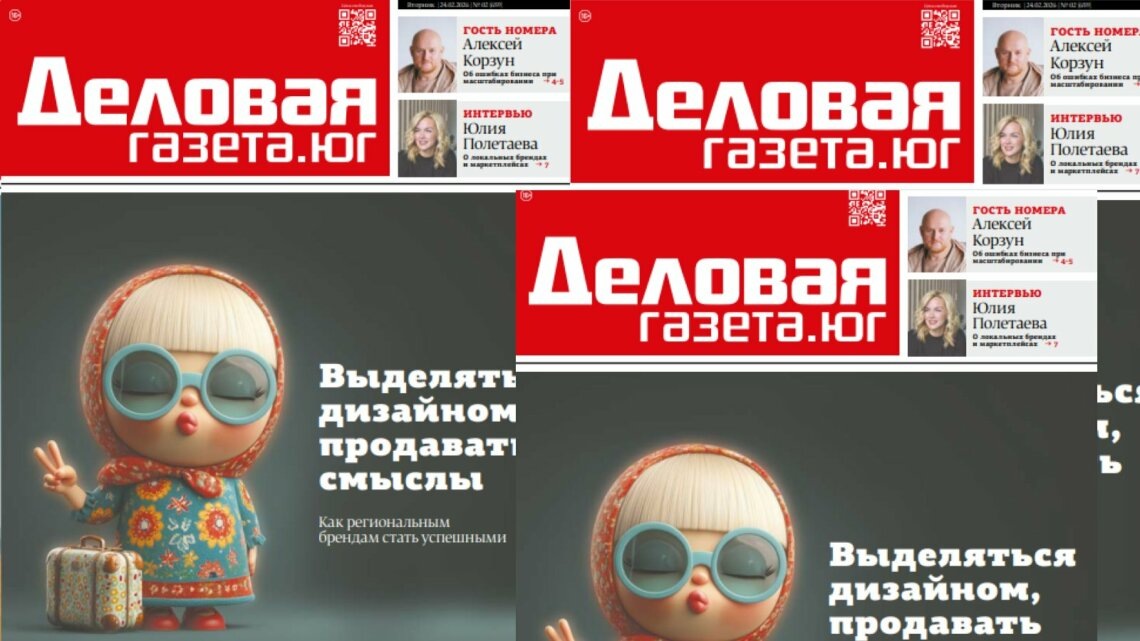 Новый номер «Деловой газеты.Юг» вышел 25 февраля 2026 года, собрали в нем актуальную информацию о том, что поможет региональным брендам расти, как идеи и смыслы способствуют масштабированию и что нужно учитывать МСП при выходе на маркетплейсы. Как подобрать момент для масштабирования и не допустить ошибок при расширении предприятия, читайте в материале «От локального успеха к широкой известности» (2-3 стр.). Гость нового выпуска — эксперт по брендингу и цифровым технологиям, технологический предприниматель, ментор фонда «Сколково» Алексей Корзун. Он рассказал, что аудитория ценит в локальных брендах, какую главную ошибку допускают небольшие компании, которые стремятся расширить свое влияние, и без чего региональные бренды не смогут выжить на рынке (4-5 стр.). О том, какую помощь могут получить предприниматели Краснодарского края и Ростовской области, читайте в рубрике «В помощь бизнесу» (6 стр.). Какие перспективы роста у малого бизнеса есть сейчас, что поддерживает тренд на региональн