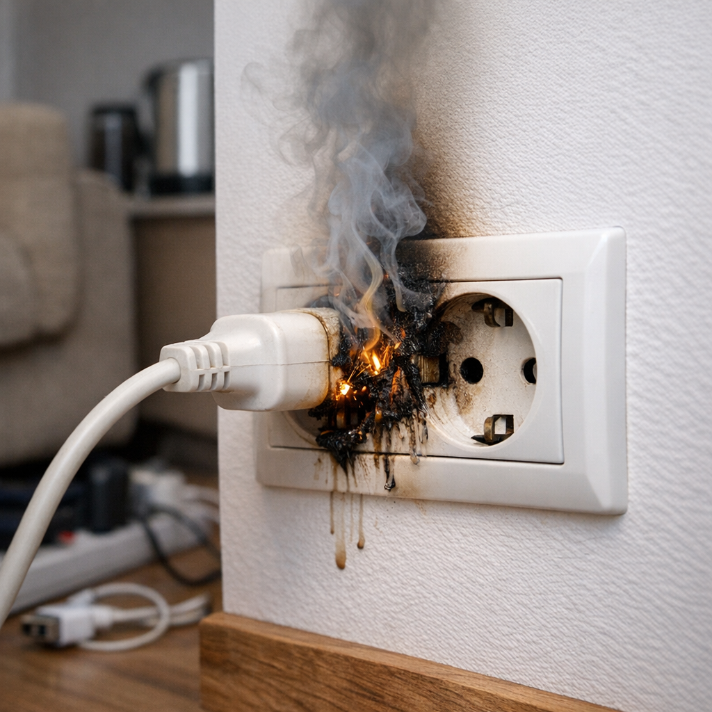 Обогреватель — до 3 кВт. Если в розетке 10А и вы включаете туда мощную технику, контакт начинает нагреваться. А нагрев — это сопротивление, ускоренный износ и постепенное ослабление зажима. Снаружи всё выглядит нормально.
