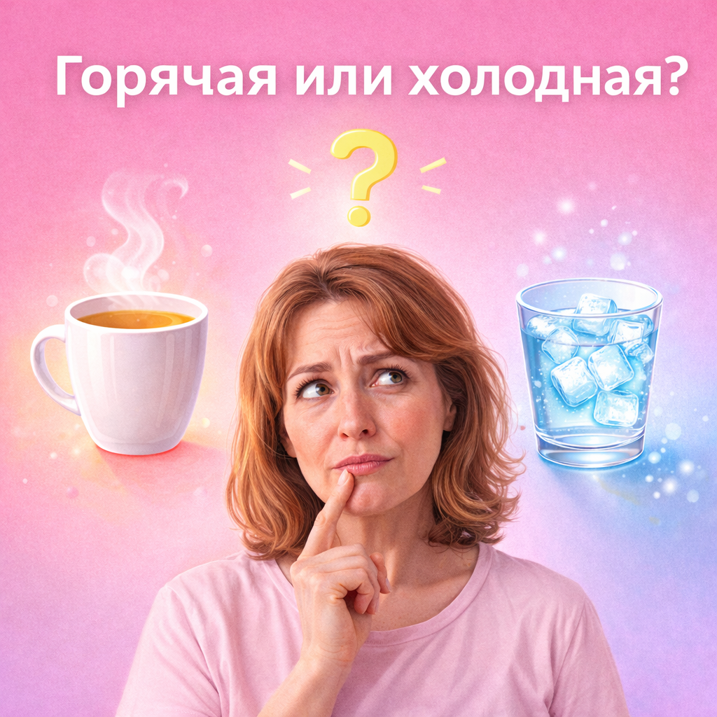 Вода комнатной температуры — идеальный выбор для 90% случаев. Она не раздражает, не стимулирует избыточно, просто дарит организму влагу, которая ему нужна.