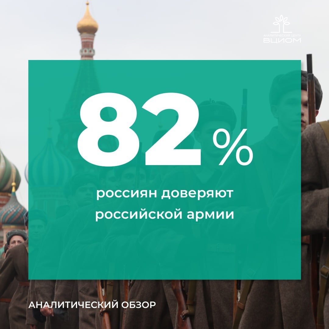 На протяжении последних лет уровень доверия российской армии держится на стабильно высокой отметке, в январе текущего года он составил 82%. Сопоставимый показатель зафиксирован и в оценках результатов, достигнутых в ходе специальной военной операции: значимыми для нашей страны их считают восемь из десяти наших сограждан. Источник: АЦ ВЦИОМ