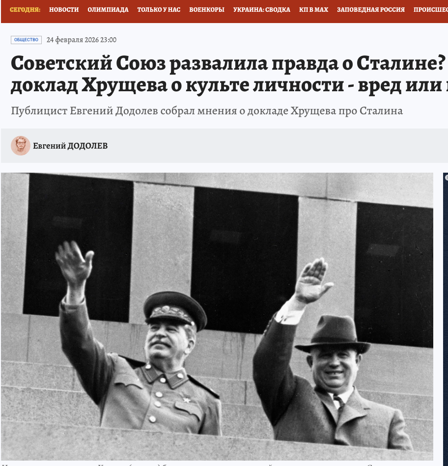 Под этим заголовком «Комсомолка» в последней «толстушки» опубликовала мои заметки про ХХ съезд КПСС.