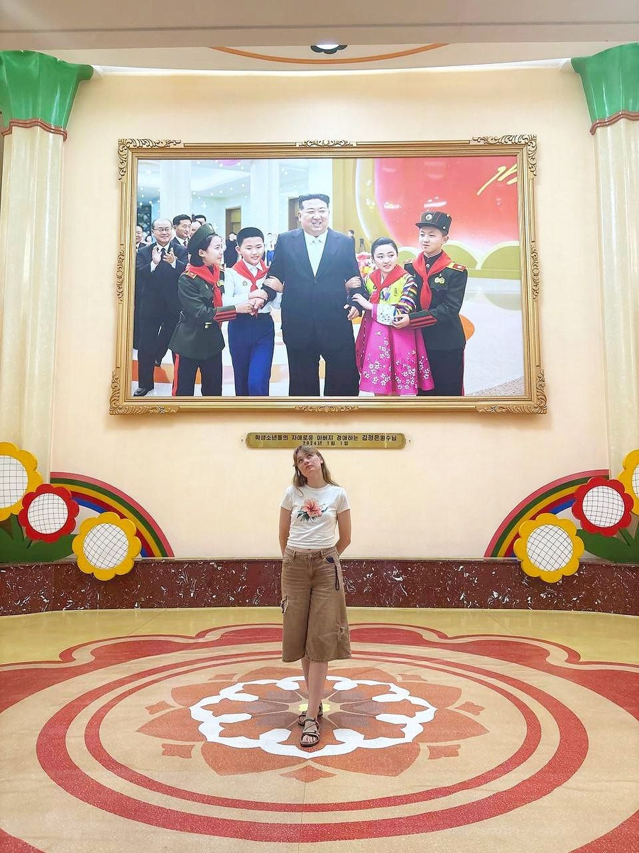 проходят занятия. Дети пели, играли на музыкальных инструментах и рисовали. Больше всего мне запомнился художественный класс, особенно материалы, на которых дети учатся рисовать. В целом методика напоминает программы наших художественных школ, за исключением одного примечательного момента. У нас обучение академическому рисунку традиционно начинается с гипсовых голов античных персонажей — Афродиты, Сократа, Цезаря, Антиноя. Также обязательны для изучения отдельные фрагменты скульптуры Давида работы Микеланджело — губы, глаз, ухо, нога. Его части тела настолько узнаваемы, что спутать их с другими просто невозможно, особенно когда ты рисовал их начиная с художки, а потом и в институте. А вот в Корее дети учатся рисовать с гипсовых бюстов своих национальных героев и вождей. Чей именно бюст изображён на фото, я точно определить не смогла, нейросеть предположила, что это молодой товарищ Ким Ир Сен, но у меня остались некоторые сомнения..🤔 Также видела гипсовый бюст женщины, очень вероятно