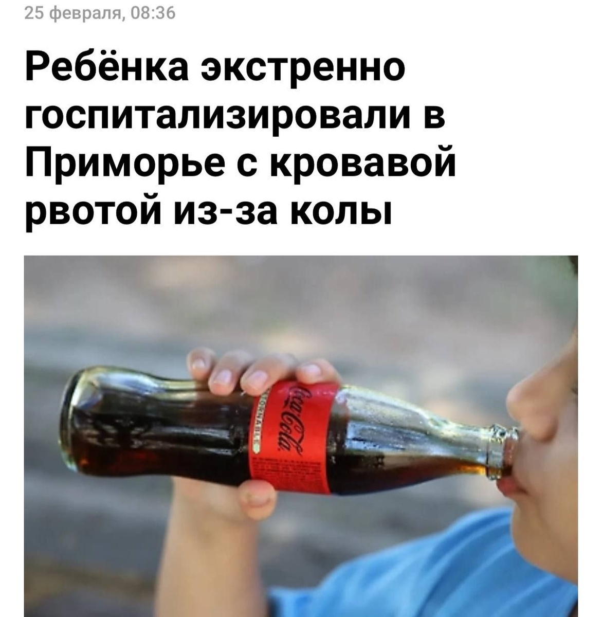 12-летний ребёнок пил так много колы, что в желудке образовалось отверстие, и после очередной банки началась КРОВАВАЯ рвота. В итоге парня срочно госпитализировали. Врачи пояснили, что всё из-за наличия в газировке ортофосфорной кислоты, которая может разъедать даже ржавчину. 🤩Лига Общепита: в центре событий