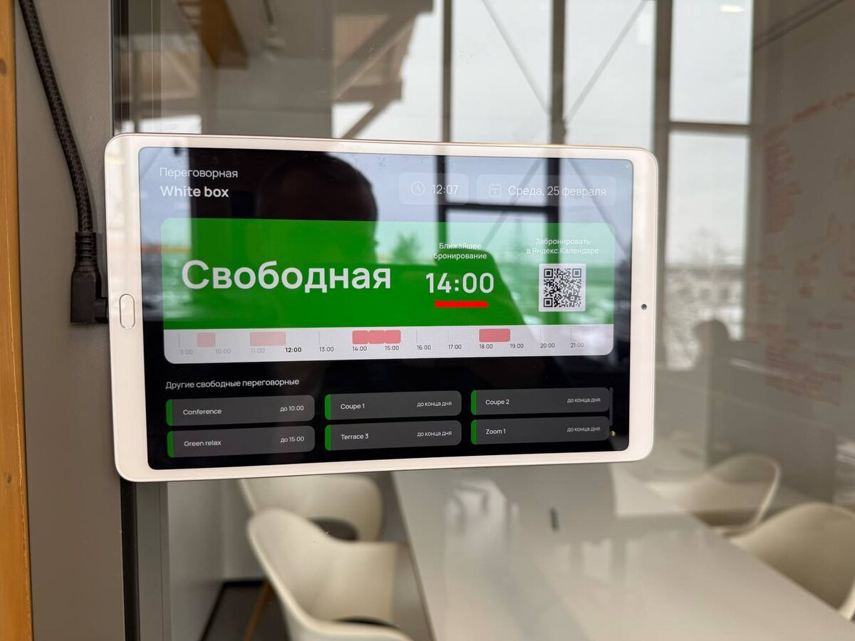 Как сделать планшет, на котором будет отображаться занятость переговорной комнаты, если в компании используется почта домена от Яндекс? На первый взгляд задача простая — на рынке есть готовые решения. Но когда начинаешь погружаться в детали, выясняется, что в полной мере они не работают. Мы перепробовали всё, что предлагает рынок. 🚫 В чём проблема? Главное ограничение со стороны Яндекса — по API не отдается список переговорок. А значит, нормально встроить готовые экраны в процессы компании невозможно. Чтобы коробочные решения заработали, нужно перестраивать логику работы с календарём: 👉 Вместо указания переговорной во встрече добавлять к встрече «фейкового пользователя» как переговорную Нас это не устроило. Поэтому начали думать. 💡 Что придумали 1️⃣ Настроили правило в админке Все входящие и исходящие письма дублируются на одну служебную почту. 2️⃣ Использовали стандартную механику календаря При создании встречи участникам отправляется письмо с указанием переговорной. 3️⃣ Подключили