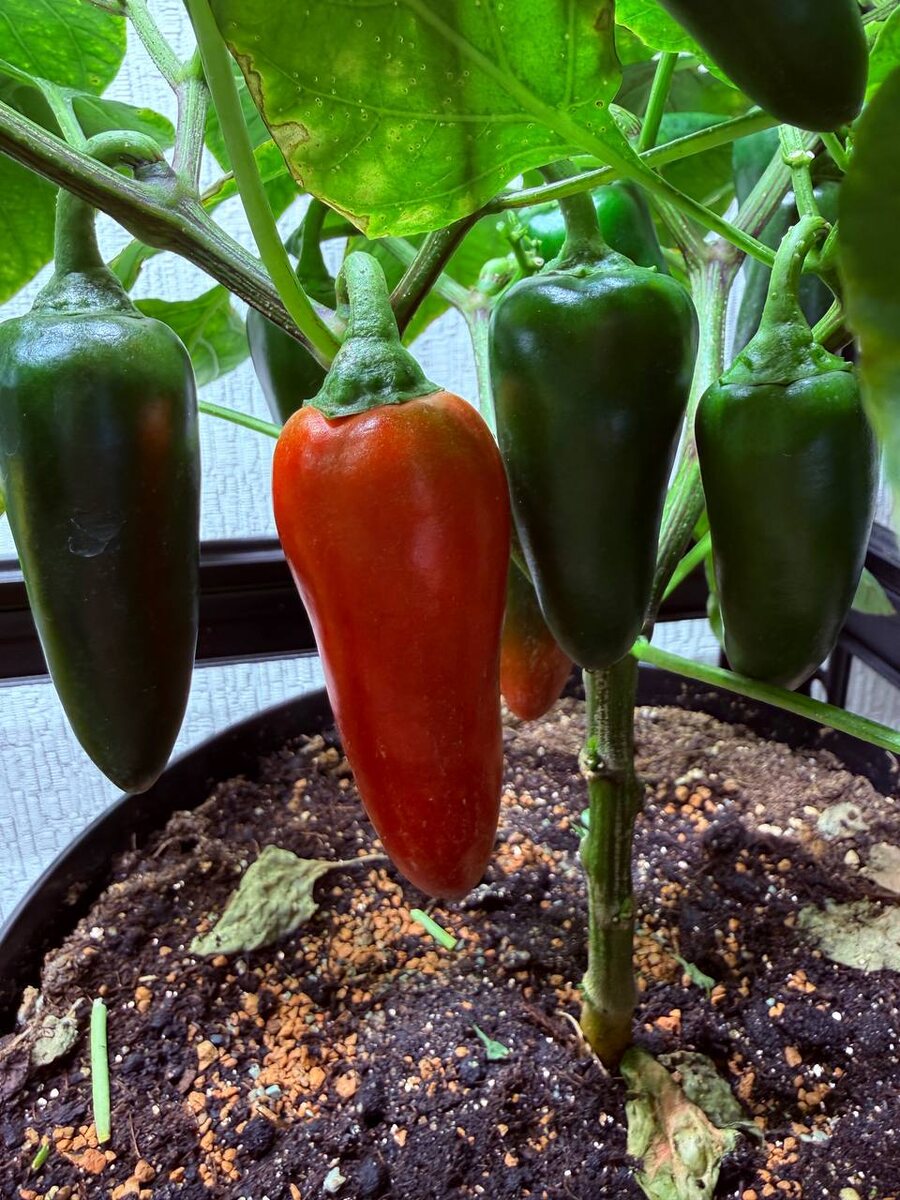 !☀️ Свежие вести из зимнего огорода☘️ Перчик Никки начинает краснеть❤️ ещё 6 дней назад был зелёным🙌 Томаты Маленькое чудо тоже набираются краски🍅 Я в МАХ #огороднастеллаже@svetlana_kostromina #перецНикки