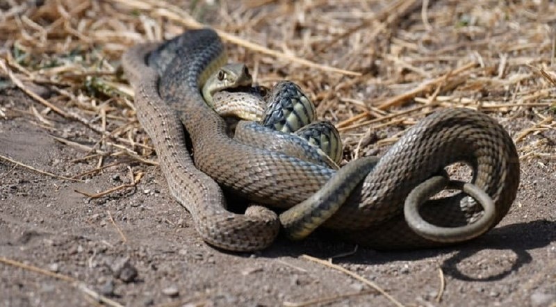 Герпетологи из Бразилии провели первый систематический обзор этого явления среди пресмыкающихся. Оказалось, что поедание себе подобных было хотя бы раз отмечено у 207 видов змей из 15 семейств. В частности, у 46 видов аспидовых, 46 видов гадюковых и 42 видов ужеобразных. Такое поведение в процессе эволюции независимо возникало у змей по меньшей мере 11 раз. Скорее всего, рептилии занимаются каннибализмом из-за нехватки пищи или из-за стресса при содержании в неволе. А вот те виды, которые специализированно охотятся на других змей, могут просто не отличать сородичей от другой добычи.