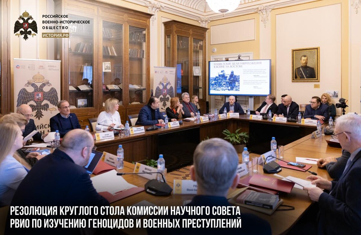 » Круглый стол прошел 18 февраля 2026 года в Штаб-квартире РВИО. Он был организован Комиссией Научного совета РВИО по изучению геноцидов и военных преступлений. 1. Все участники круглого стола солидарны в том, что конкуренция и создание иерархии жертв нацистских преступлений недопустимы. 2. Все участники круглого стола солидарны в том, что при вторжении в Советский Союз нацистская Германия имела две беспрецедентные программы массовых убийств миллионов людей, нацеленные на советских граждан и непосредственно на евреев. 3. Все участники солидарны в том, что концептуальные детали истории геноцидальных действий нацистов необходимо решать путем взаимоуважительных научных дискуссий. 4. Все участники солидарны в том, что необходимо согласованно действовать с целью сохранения исторической памяти как обо всех без исключения жертвах нацистских преступлений, так и о подвиге советского народа, победившего нацизм. 5. Все участники солидарны в том, что необходимо предпринять усилия для создани