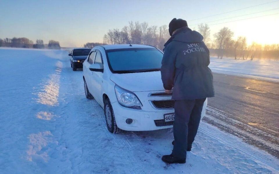 Бойцы МЧС эвакуировали пять человек, машина которых заглохла в мороз на алтайской трассе