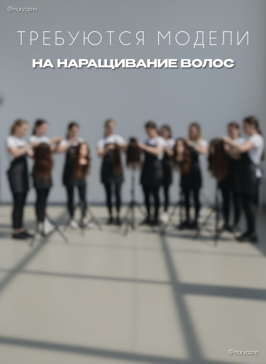 ™️ Студия MARYAZNN набирает моделей на регулярной основе для создания профессионального контента, обучения и отработки техник. Если вы давно мечтаете о красивых длинных и густых волосах — это идеальная возможность. ✨ Кого мы ищем? Модели нужны для: 🔹 Полного наращивания — Увеличение длины и густоты по всей голове. 🔹 Частичного наращивания — Виски — Затылок — Макушка — Проблемные зоны 🔹 Удлинение отдельных зон — Работа по длине на разных участках головы — Исправление асимметрии стрижки — Восстановление «выстриженных» мест 🔹 Загущение — Для тех, кто хочет больше плотности без сильного удлинения. 🔹 Коррекции — Снятие старой работы и установка новых материалов. 🔹 Снятие / переделка — Для моделей, у которых есть текущая работа. ✨ Что получает модель: Наращивание под моим личным контролем Чистую, аккуратную установку без травмирования волос Премиальные материалы, натуральные срезы Скидку от 40 - 50% на работу (оплачиваются только материалы или минимальная работа) Участие в п