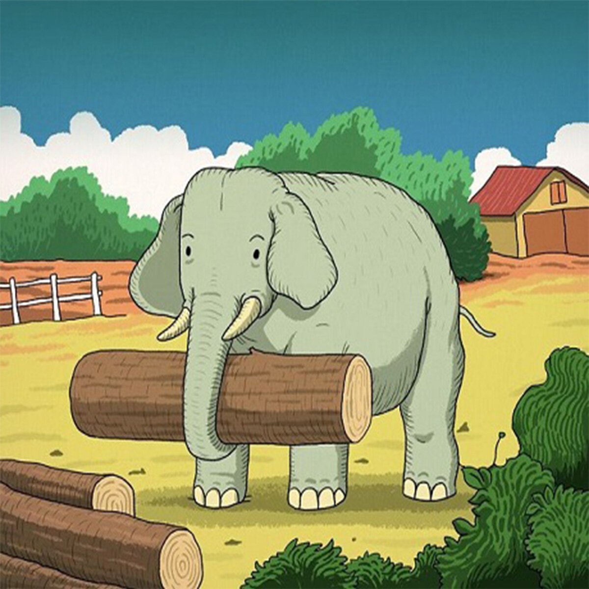 Любите проверять мозг на внимательность и смекалку с помощью забавных оптических иллюзий? Тогда эта головоломка точно для вас. Оптическая иллюзия – это когда картинка обманывает глаза, а мозг начинает сомневаться в том, что он видит. Фигуры меняются на глазах, линии «играют», предметы и животные прячутся в неожиданных местах. Мозг пытается собрать всю картину, но обманут… и это завораживает. Существуют разные типы иллюзий: физические, физиологические, когнитивные. Все они по-своему «щекочут» мозг, заставляя включать внимание, логику и воображение. На этой иллюзии вы видите слона, который держит хоботом бревно. Маленький факт для любителей фактов: слон может поднимать хоботом до 10% собственного веса. Для взрослого слона бревно весом 500–600 кг – почти как зубочистка для нас. Но вернёмся к картинке. Вокруг слона – деревья, забор, сарай, типичная слоновья ферма. Казалось бы, слон – единственный обитатель. Но нет! Там прячется ещё одно животное. Тысячи людей ломали голову над этой иллюзие