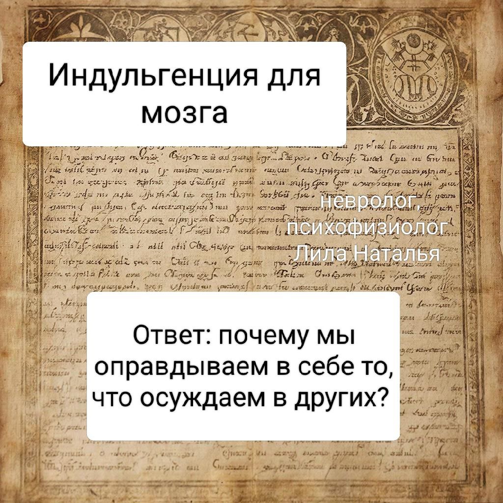 Индульгенция — это в средние века документ, который «прощал» грехи за деньги. Купил бумажку — и живи спокойно. Сегодня наш мозг научился выдавать себе этот документ бесплатно. И это, пожалуй, самая дорогая услуга, которую мы оказываем собственному эго. Как это выглядит с точки зрения нейробиологии: представим что человек совершает поступок, который объективно расходится с моральными нормами. Допустим, он пользуется доверием другого человека в своих целях. Или принимает решение, которое идёт во вред тому, кто от него не ждёт подвоха. В этот момент в мозге запускается удивительный механизм: 1. наш мозг начинает лихорадочно подбирать аргументы: «у меня не было выбора», «он бы поступил так же», «это просто стечение обстоятельств». 2. наш центр тревоги и совести приглушается. Чтобы мы не чувствовали вину, потому что это неприятно. 3. дофамин подкрепляет решение: предвкушение выгоды или спокойствия, делает нас слепыми к последствиям для других. Человек получает индульгенцию. И идёт дальш