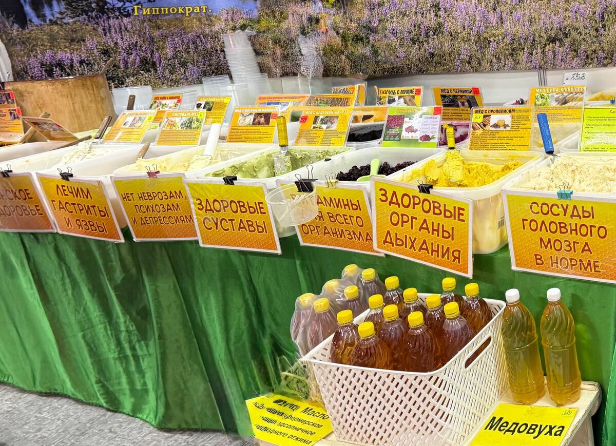 Впечатления с ярмарки! Помню, что еще в начальной школе в наш курс обществоведения входило понятие об аутотренинге, самовнушении — аутосуггестии. Действенная штука! Внушаешь себе идею, и она начинает работать. Психологические механизмы, всё весьма научно. И вот гляжу я на эти таблички у меда. И понимаю. Это же готовые аффирмации на неделю! Итак: Понедельник: женское здоровье Вторник: лечим гастриты и язвы Среда: нет неврозам, психозам (вот им точно нет!!) и депрессиям Четверг: здоровые суставы Пятница: витамины для всего организма Суббота: здоровые органы дыхания Воскресенье: сосуды головного мозга в норме! — это, простите за каламбур, о наболевшем (Хотя, неврологи говорят, что от сосудов голова не болит.) Так что пожалуйста, дорогие мои, сегодня — скажите решительное «нет» психозам. Всем здоровья!
