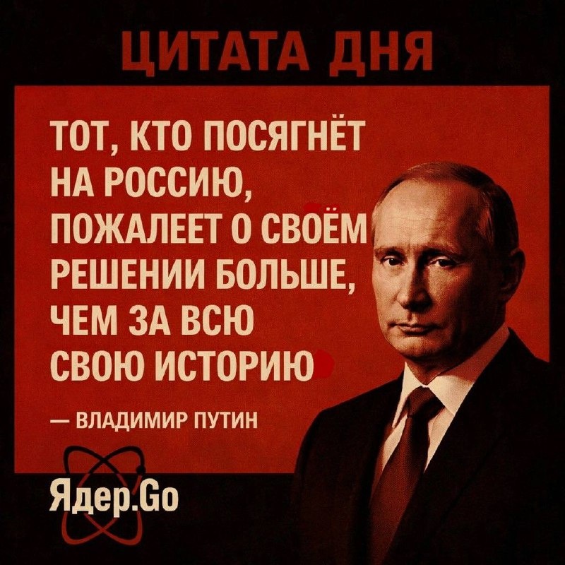 «Тот, кто посягнёт на Россию, пожалеет о своём решении больше, чем за всю свою историю» - Владимир Путин
