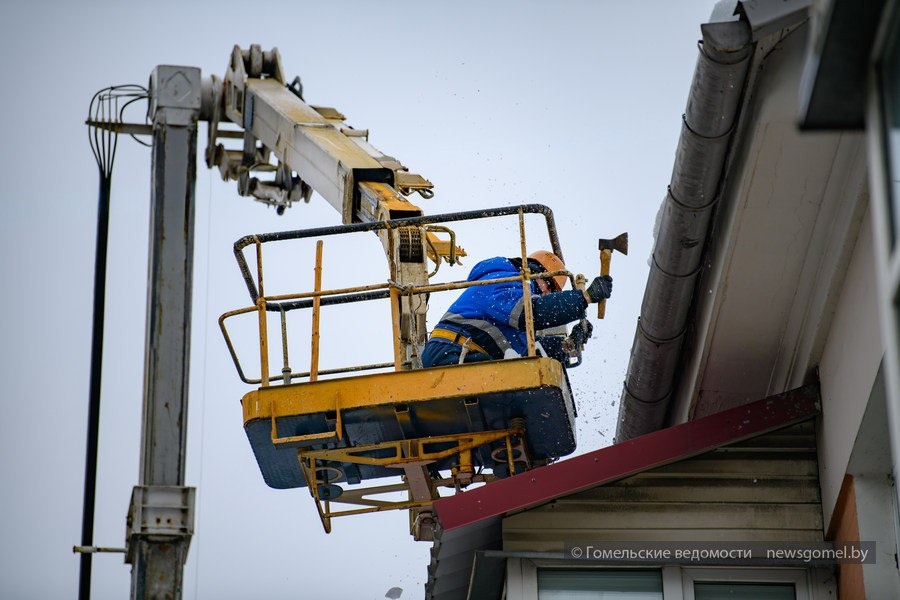 В центре Гомеля кипит работа — сотрудники коммунальных служб ежедневно очищают крыши домов от наледи и сосулек. Благодаря их усилиям жители и гости города могут увереннее шагать по зимним тротуарам, зная, что над их головами работают настоящие герои.