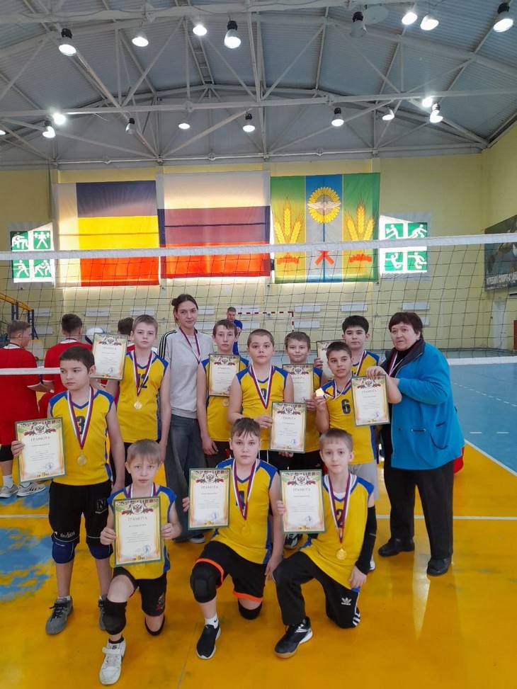 20 февраля в г.Сальске проходило открытое первенство спортивной школы Сальского района по волейболу среди команд мальчиков младшего возраста, посвящённое Дню защитников Отечества. В первенстве принимали участие 4 команды из Сальского, Пролетарского и Орловского районов. Команду Пролетарского района представляли ребята из ст. Будённовской и г.Пролетарска. В составе команды играли: Алексей Кулишов (капитан), Влад Дубина, Влад Чуканов, Исмаил Алехадов, Денис Чупанов, Дима Куканов, Давид Боровик, Матвей Гуков, Костя Куклин, Семён Плетнёв. В результате упорной борьбы ребята заняли почётное первое место. Все игры выиграли со счётом 2:0. Молодцы! Так держать! О.ВАСИЛЮК, А.ЕРКИН, А.ЛЯШЕВА, тренеры