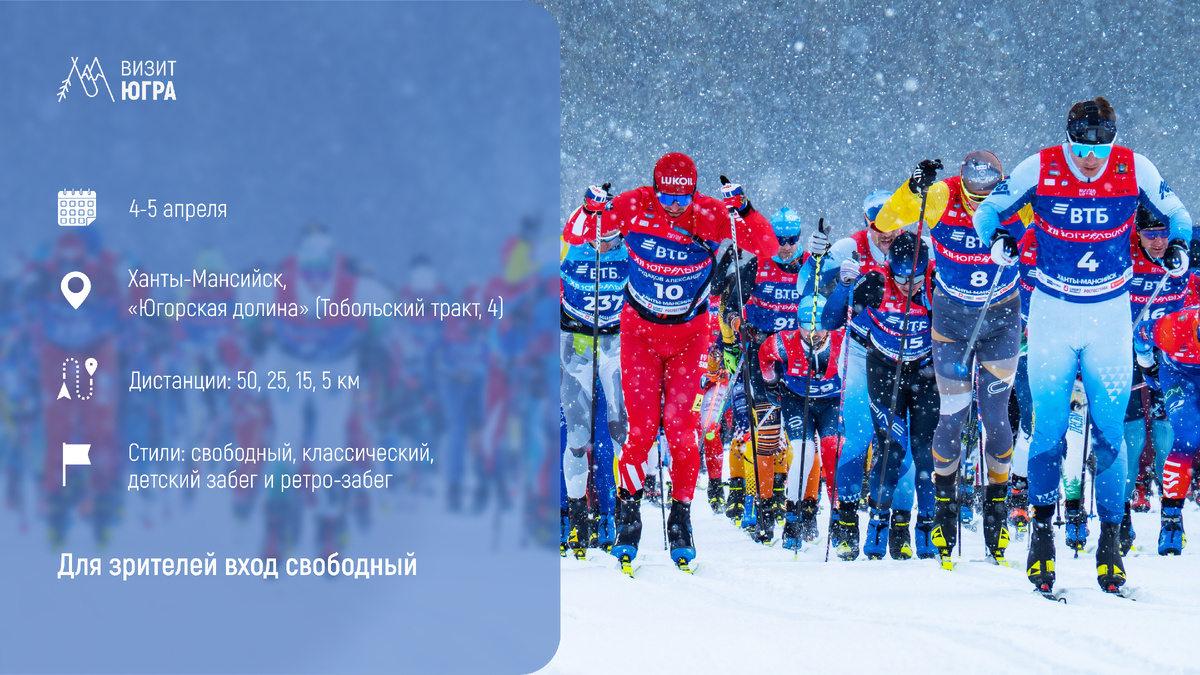 В начале апреля Ханты-Мансийск станет центром лыжного сезона — здесь пройдет XIII Югорский лыжный марафон. В программе гонки свободным и классическим стилем, детский старт, ретро-забег и активности для зрителей. Можно выйти на трассу, поддержать участников или приехать в готовое путешествие с проживанием, экскурсиями и дегустацией северной кухни. Старт и основные события пройдут в пойме протоки Горная. С 2013 года марафон стал одним из самых массовых стартов России, а в 2025 году занял третье место по числу участников. На трассе выступали олимпийские чемпионы и лидеры сборной России — Сергей Устюгов, Александр Легков, Евгений Дементьев, Александр Большунов, Татьяна Сорина. Несколько раз здесь проводился финал Кубка марафонов FIS, что закрепило международный статус старта. Призовой фонд в этом году — 2 500 000 рублей. Но для большинства важнее выйти на одну трассу с чемпионами и достойно закрыть сезон на большом старте. Программа рассчитана на любой уровень подготовки. В течение двух дн