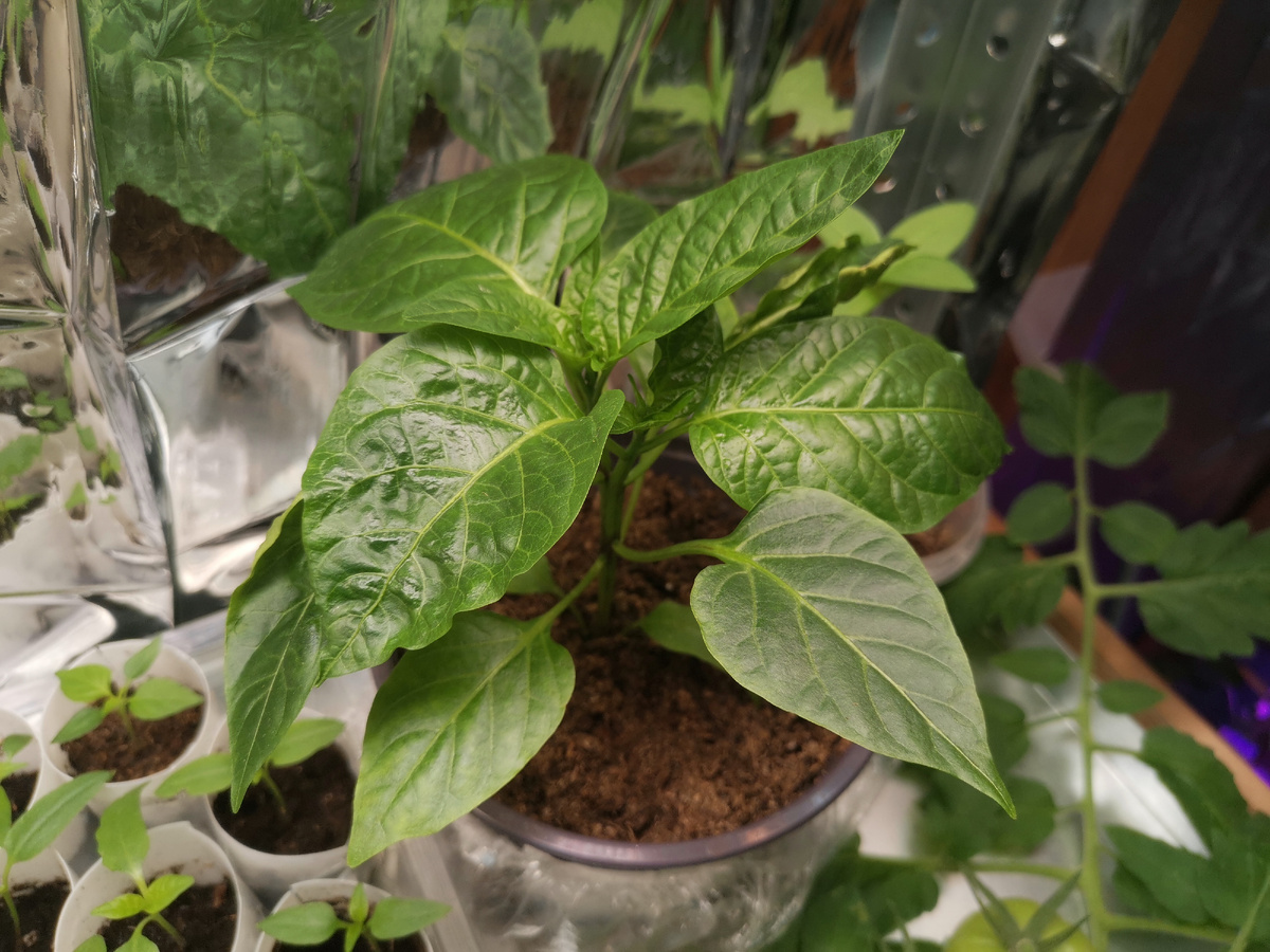 Я думала про что вам рассказать, про остановку сердца или рассаду. Решила, что нарушать традиции среды не стоит и расскажу я про рассаду. В декабре я не удержалась и воткнула семечко Павловского сладкого перца. Он у меня ооочень сильно заболел оэдемой, я уже думала, что погибель его пришла. Я показывала в прошлом отчёте. Зрелище было крайне печальное. Оэдемы у меня никогда и ни на чём не было, но как с ней работать я знаю. Поэтому вот: Да-да, выздоровели мы. Но тут есть и плохие новости. Больше ни одно семечко Павловского не проклюнулось. Все спят и ничего не меняется уже много дней, это значит, что шансов уже нет. Тут тоже всё довольно шатко, потому в целом нормально взошёл Питер Пеппер, но один сразу был вот такой жёлтый и он не отошёл, а загнулся: Остальные нормально. Дон Санчо и Огненный флажок очень долго прорастают, я посеяла еще сухими семенами в грунт, потому что уже не могу ждать и не понимаю почему так долго они прорастают. Всё хорошо, особенно с Нижегородцем. Всхоже