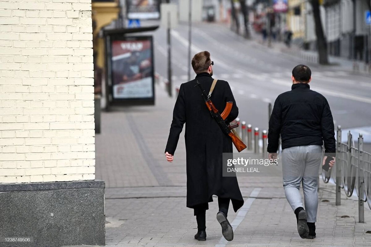 В первые дни начала боевых действий, украинские власти, находясь в ситуации паники и неразберихи, пошли на отчаянные меры и начали стихийную раздачу автоматического вооружения местному населению. Выдача оружия проводилась порой бесконтрольно, просто из кузовов автомобилей или подвалов зданий. Кто-то брал оружие для защиты, кто-то для сведения счетов с давними обидчиками, кто-то для реализации своих преступных умыслов, ну а кто-то просто чтобы сделать классные фоточки. Объединяло этих всех людей одно - они не обладали опытом и навыками, не были сведены в нормальные подразделения и практически никак не контролировались, представляя собой скорее бандитов, чем военных. Вскоре это привело к череде фатальных последствий с расстрелом друг-друга, случайных гражданских, целой кучей преступлений, повальной "диверсантомании", а также к одному из наиболее известных инцидентов с "дружественным огнем", произошедшим на Оболони в Киеве - именно там, где на первом видео и раздавались автоматы всем ж