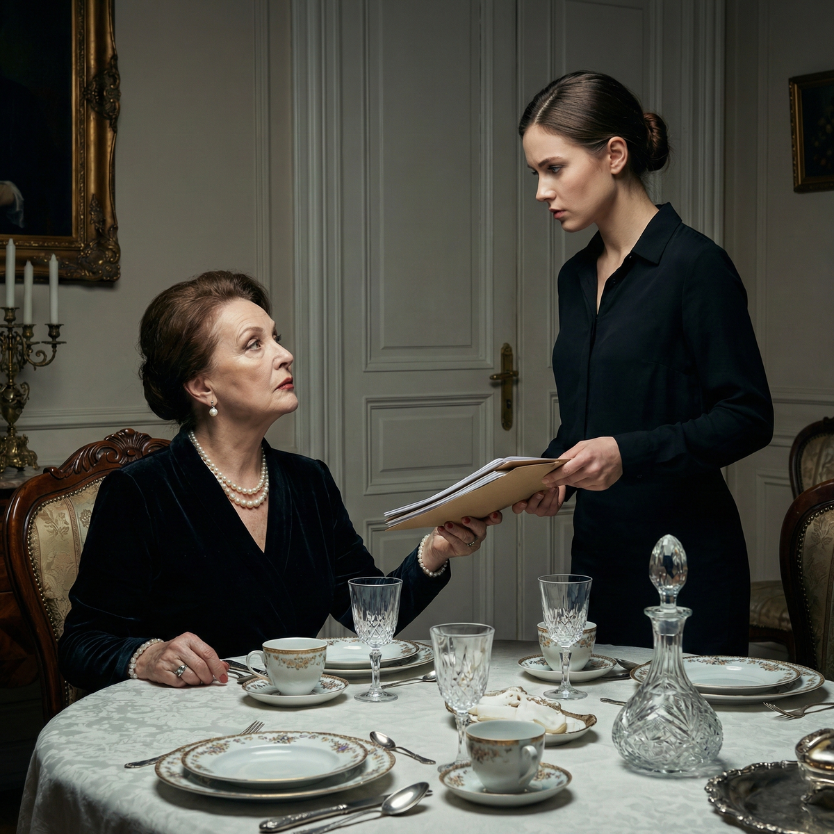 Елена, одетая в строгое черное платье, которое делало ее похожей на судью, медленно вошла в столовую. В руках она несла не торт со свечами, а тонкую кожаную папку.