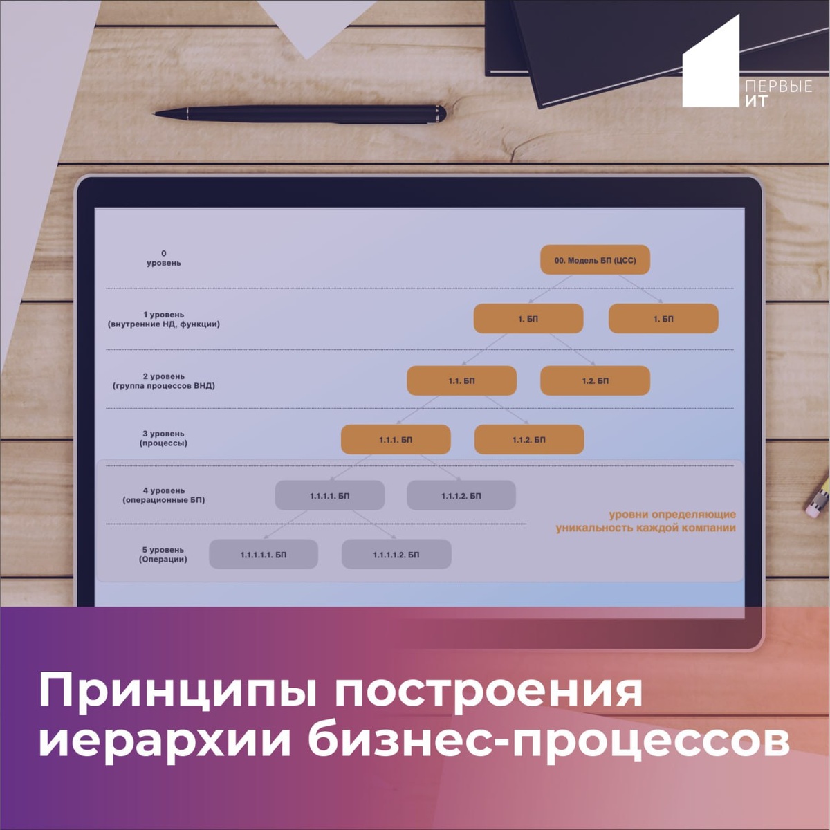 🚀 При построении модели бизнес-процессов и дальнейшей автоматизации я часто сталкиваюсь с попытками выстроить её по единому шаблону ❌ Однако такой подход, как правило, приводит к искажению реальной картины работы конкретной компании и отражению ее конкурентной уникальности. Многие пытаются притянуть «за уши» некие типовые бизнес-процессы ✅ Корректная модель должна отражать устройство конкретного бизнеса и особенности его бизнес-процессов, без стремления к единообразию Отличие моделей бизнес-процессов в организациях 🏢 Как правило, до определенного уровня иерархии все организации имеют абсолютно схожие бизнес-процессы, но самое главное отличие представляют собой бизнес-процессы нижних уровней иерархии, операционных уровней, а также кросс-функциональные, которые и делают организации непохожими друг на друга, несмотря на схожие отрасли и виды деятельности ❗️Таким образом, иерархия бизнес-процессов должна формироваться исходя из содержания и сложности конкретных процессов На верхних уровн