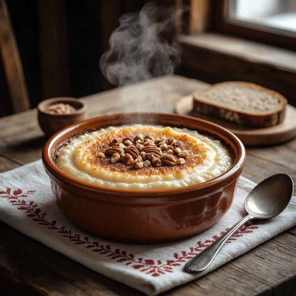 Есть блюда, которые больше похожи на легенду. Они звучат как сказка, подаются как десерт и пахнут праздником. Гурьевская каша - именно такая. Это не просто манная крупа с молоком. Это роскошное, многослойное, запечённое чудо с орехами, сухофруктами и карамельной корочкой. Когда-то её подавали в богатых домах, а позже - в лучших ресторанах. В советское время она считалась «парадным» десертом: не повседневным, а для особого случая. И сегодня её можно приготовить дома - если знать правильную технологию. По одной из версий, каша названа в честь графа Гурьева - министра финансов Российской империи. Считается, что рецепт придумал его крепостной повар. Блюдо быстро стало популярным при дворе. Главная особенность - сливочные пенки. Их аккуратно снимают с топлёных сливок и выкладывают слоями. Именно они дают тот самый нежный, почти кремовый вкус. Гурьевская каша - это мост между крестьянской простотой и дворянской изысканностью. Для каши: Для наполнения: Для карамельной корочки: Это самый важн