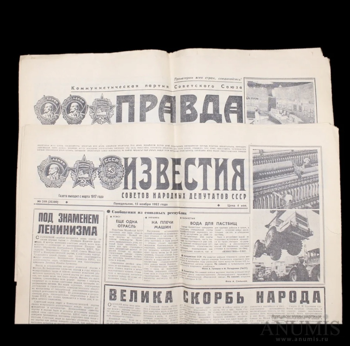 - "Известия": Официальный орган Совета Министров СССР. Немного более "демократичная" чем "Правда", но тоже весьма серьезная. Здесь печатались официальные документы, сообщения, а также аналитические статьи.