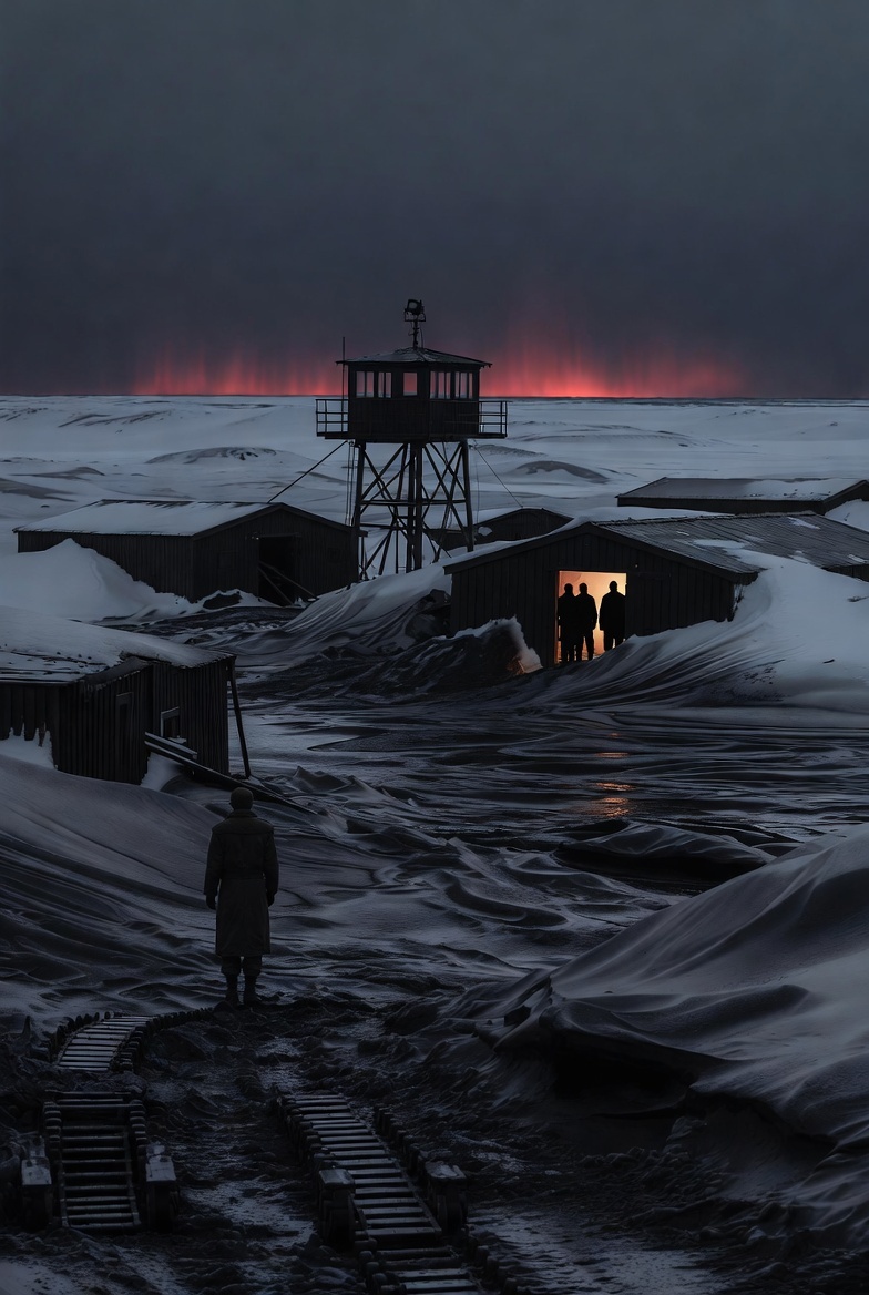 Тишина встретила их раньше, чем они увидели строения. В тундре всегда есть звуки — ветер, скрип снега, далекий лай собак. Здесь не было ничего. Абсолютная, мертвая тишина, от которой закладывало уши. И снег... снег был черным.