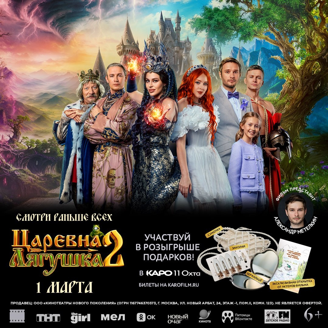 ? 1 марта в КАРО 11 Охта состоится специальный показ сказки «Царевна-Лягушка 2» с участием Александра Метелкина. Актер представит фильм перед началом показа и разыграет среди гостей эксклюзивный киномерч. 🎬 Количество мест ограничено, билеты разбираем на сайте