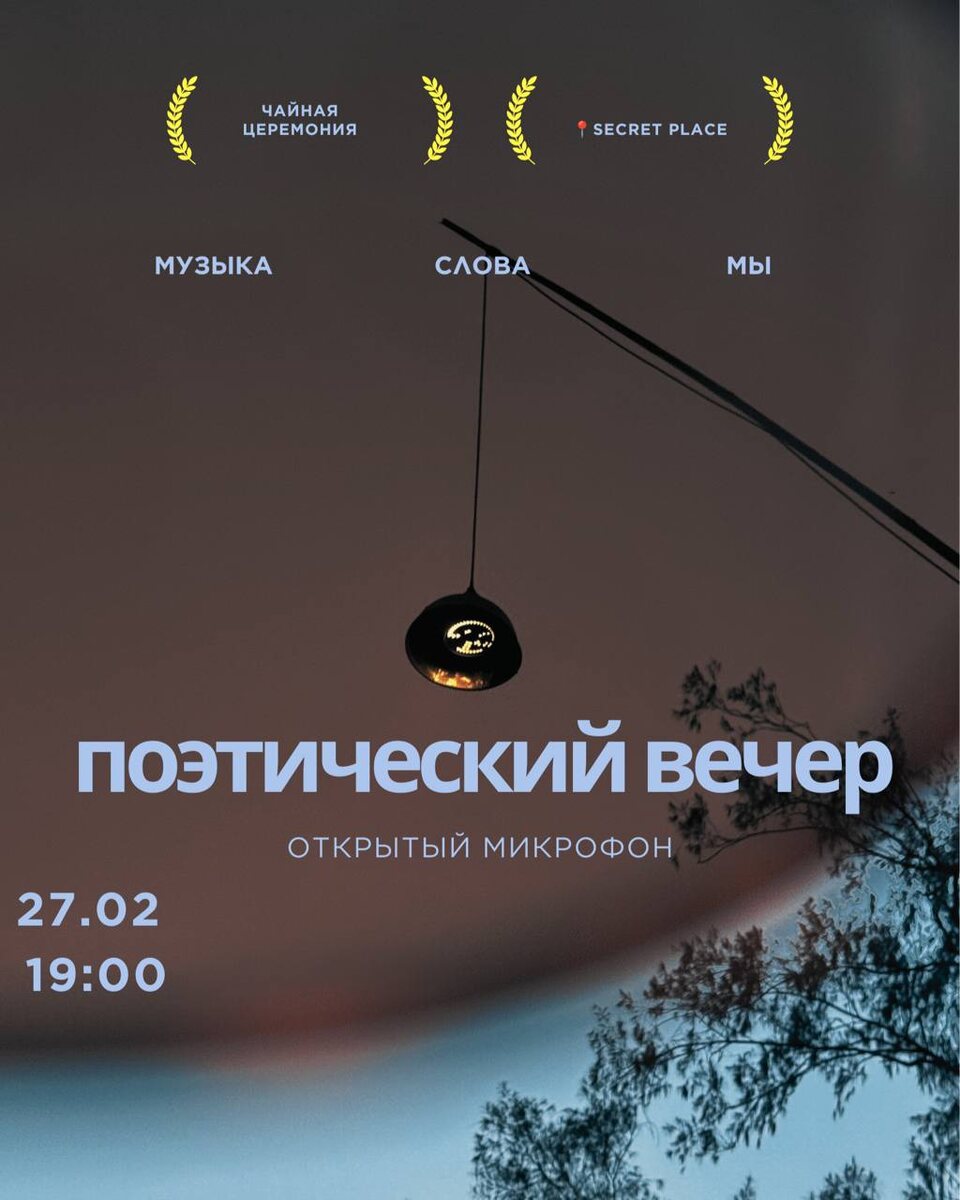 📍Место Сбор в 19:00 Тёплый поэтический вечер с живой музыкой и чайной церемонией 📖Делимся смыслами, чувствами и тишиной 🌖Наслаждаемся музыкой Можно: Выступить — прочитать то, что важно: поэзию, прозу, заметку Слушать, растворяясь в атмосфере 📙Вход 500 rs