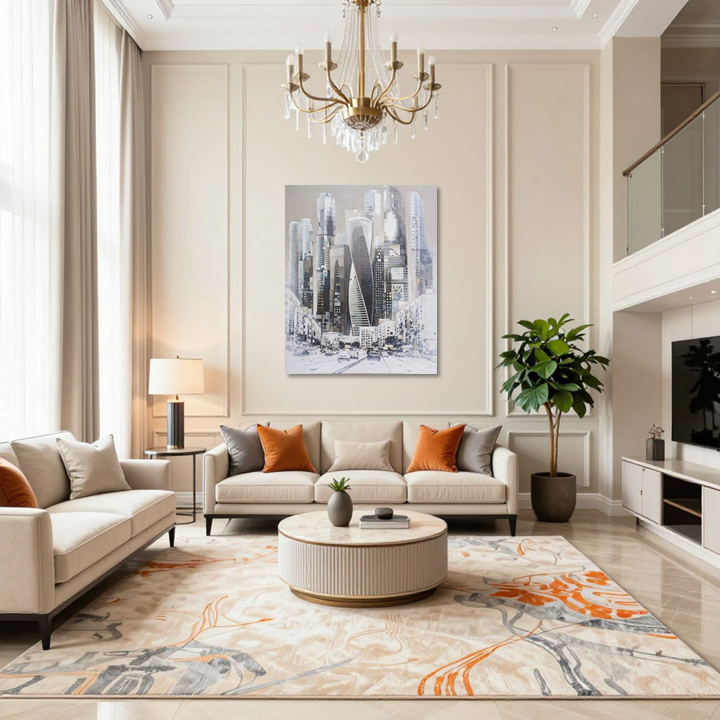 Так могла бы выглядеть гостиная в вашем проекте. На стене - работа творческого дуэта Студия 30 "Москва-Сити"