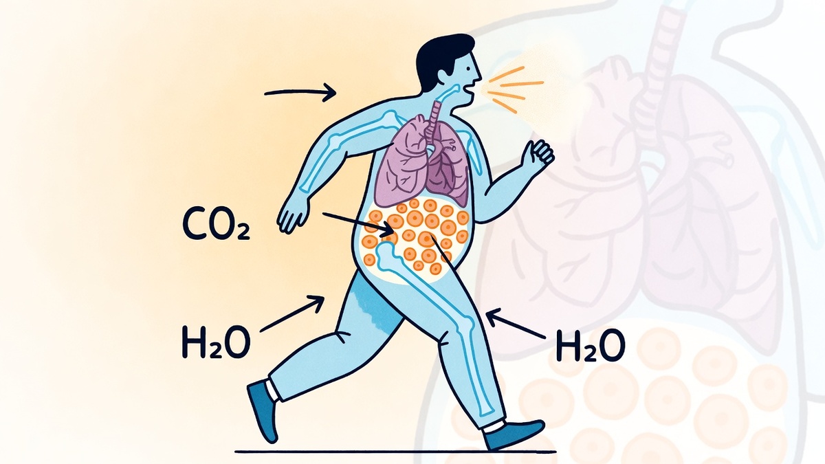 Многие думают, что он “вышел с потом” или “превратился в энергию”. Это не так. Основная часть жира уходит через лёгкие — в виде углекислого газа. Звучит неожиданно, но это обычная химия. И если понять её один раз, легче не вестись на мифы про “плавление жира”. Жир в теле хранится в жировых клетках, чаще всего в виде триглицеридов. Это просто запас топлива. Когда вы создаёте дефицит энергии — меньше едите, больше двигаетесь или и то и другое — организм начинает использовать этот запас. Жир не “испаряется” и не “тает”. Он окисляется, то есть вступает в реакцию с кислородом. На выходе получаются две вещи: Углекислый газ вы выдыхаете. Вода выходит с мочой, потом, дыханием и другими жидкостями. Вот почему фраза “жир ушёл через дыхание” не шутка. Это правда. Основная часть массы уходит именно как углерод в составе CO₂, а меньшая — как вода. После тренировки весы часто показ