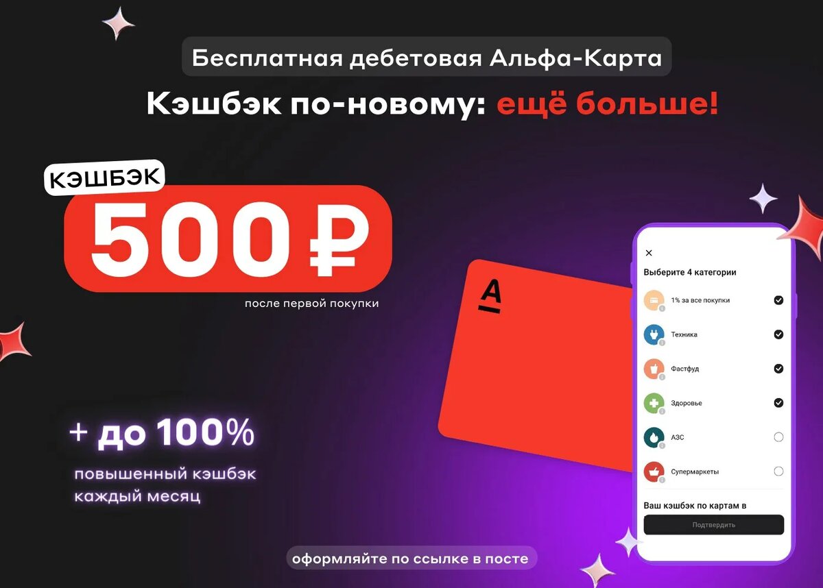 Наслаждайтесь картой! А если у вас ее еще нет, оформите прямо сейчас. Это займет всего 5 минут: заполните небольшую анкету, и курьер доставит карту в удобное для вас место. https://alfabank.ru/lp/retail/dc/flexible-agent/?platformId=alfapartners_msv_DC-flexible_954007_3469097&utm_source=alfapartners&utm_medium=msv&utm_term=DC-flexible&utm_campaign=954007be&utm_content=alfapartners_msv_DC-flexible_954007_3469097 (Карта Альфа)