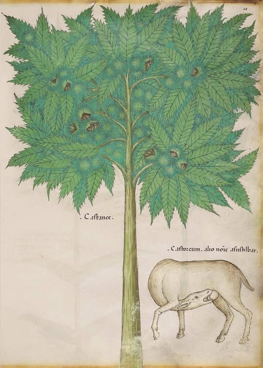 Типичный пример: бобёр и каштан из итальянского средневекового травника «Tractatus de Herbis», ок. 1440 г.
