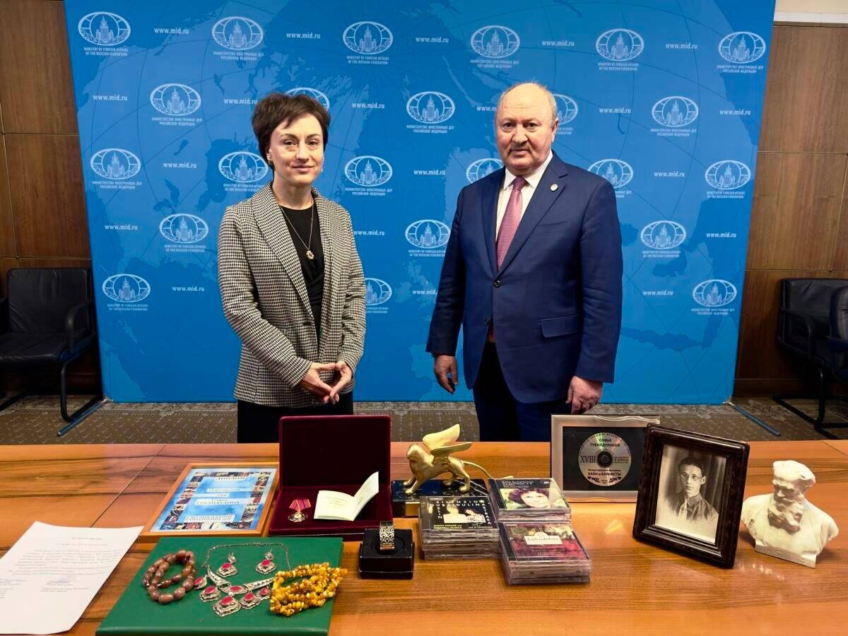 🎼🙏Личные вещи композитора Софии Губайдулиной передали Татарстану из Германии Заместителю Премьер-министра Татарстана – Полномочному представителю республики в РФ Равилю Ахметшину в МИД РФ передали личные вещи композитора. В их числе – орден «За вклад в культуру и искусство РФ», врученный композитору в 2022 году, татарские серебряные украшения (колье и серьги), янтарные бусы, наручные часы, окарина, несколько десятков компакт-дисков с ее музыкой, одежда и другие личные предметы. Также в списке – фотография ее отца Асгата Масгудовича Губайдулина в рамке. Выиграйте iPhone | Татмедиа в MAX