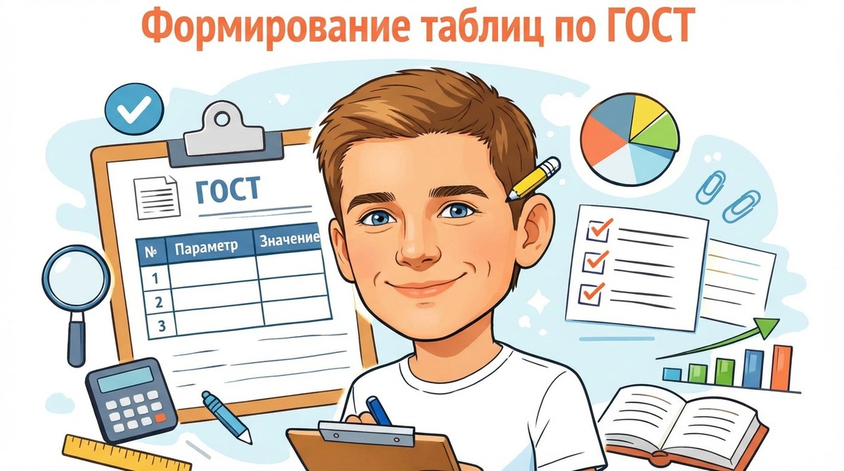 Сдал курсовую, а через неделю получил письмо: «Переделайте таблицы по ГОСТу». Звучит знакомо? Проблема в том, что 70% студентов оформляют таблицы неправильно — ставят точки после названий, забывают про нумерацию или криво переносят на следующую страницу. Я разобрал актуальный ГОСТ Р 7.0.97-2016 и собрал 7 конкретных правил с готовыми примерами. Прочитаешь за 8 минут, скопируешь шаблоны — и таблицы пройдут проверку с первого раза. Бонусом добавил чек-лист из 10 ошибок, которые ловят преподаватели.
