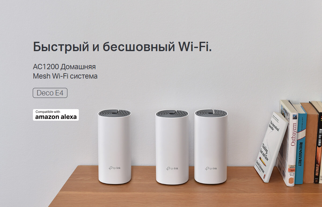 Deco E4 - это домашняя mesh-система из модулей. Один модуль становится главным (к нему подключается интернет), второй расширяет покрытие. В итоге сеть ощущается как единая: вы не думаете, к какой точке подключаться, и не видите "два разных Wi-Fi" в списке.