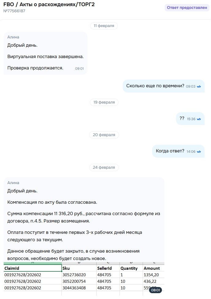Спустя 90 дней они уведомили нас что приняли коробку, но судя по акту приемки она пустая) Мы открыли спор. Скинули ссылку на яндекс диск, куда загрузили видео сборки поставки и видео как заносим эту коробку на ПВЗ. Это обязательно. Без видео можете забыть о своём товаре. Через неделю они нашли часть товара, а остаток они продолжили искать. И еще через три недели они уведомили нас, что вернут деньги за потерянный товар. История с их расследованием по поиску нашего товара длилась 3,5 месяца.